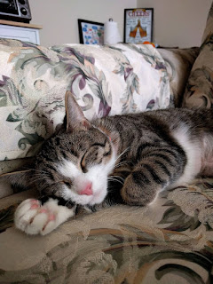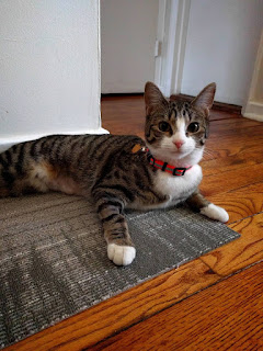 Chantilly now Bella (not from twilight movie) is adjusting perfectly to her new home. She has all these new toys but her favorite toy is the crumbled up receipt. When shes has had enough pets she uses her paws to push our hand. This morning I woke up to her loud purr in my face. She also likes to lick our blanket, like until it is soaking wet.