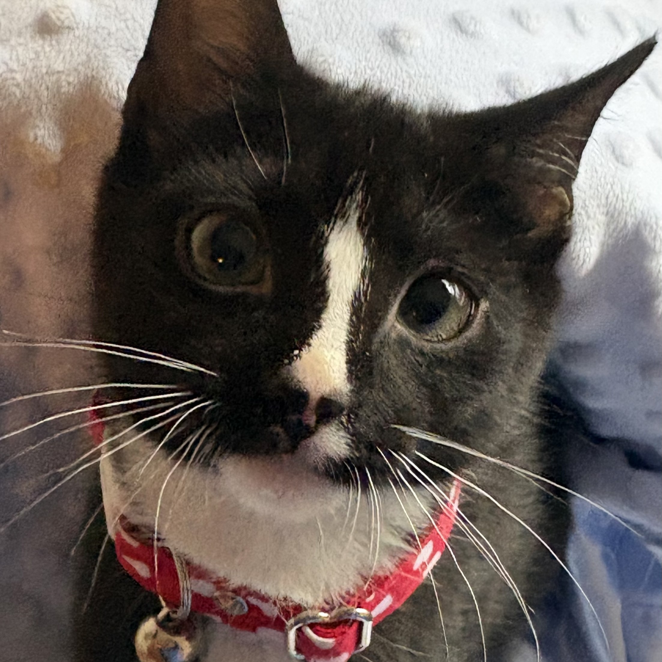 What an amazing boy! Butch came into rescue at four weeks old and started out shy and afraid of human contact. He has grown into a wonderful purring lap cat who sleeps with his foster mom. He is inquisitive and loves other cats. He likes to cuddle with resident adult cats in his foster home as well as his litter mates. He was also fostered with a large gentle dog and was not bothered by her. Favorite toys - wand toys and ball chase. Favorite treat - Churus. Butch will follow up anywhere if he sees you have a Churu. This sweet baby is ready to give a lifetime of love. Butch would do best in a loving home with a quiet to moderate activity level.