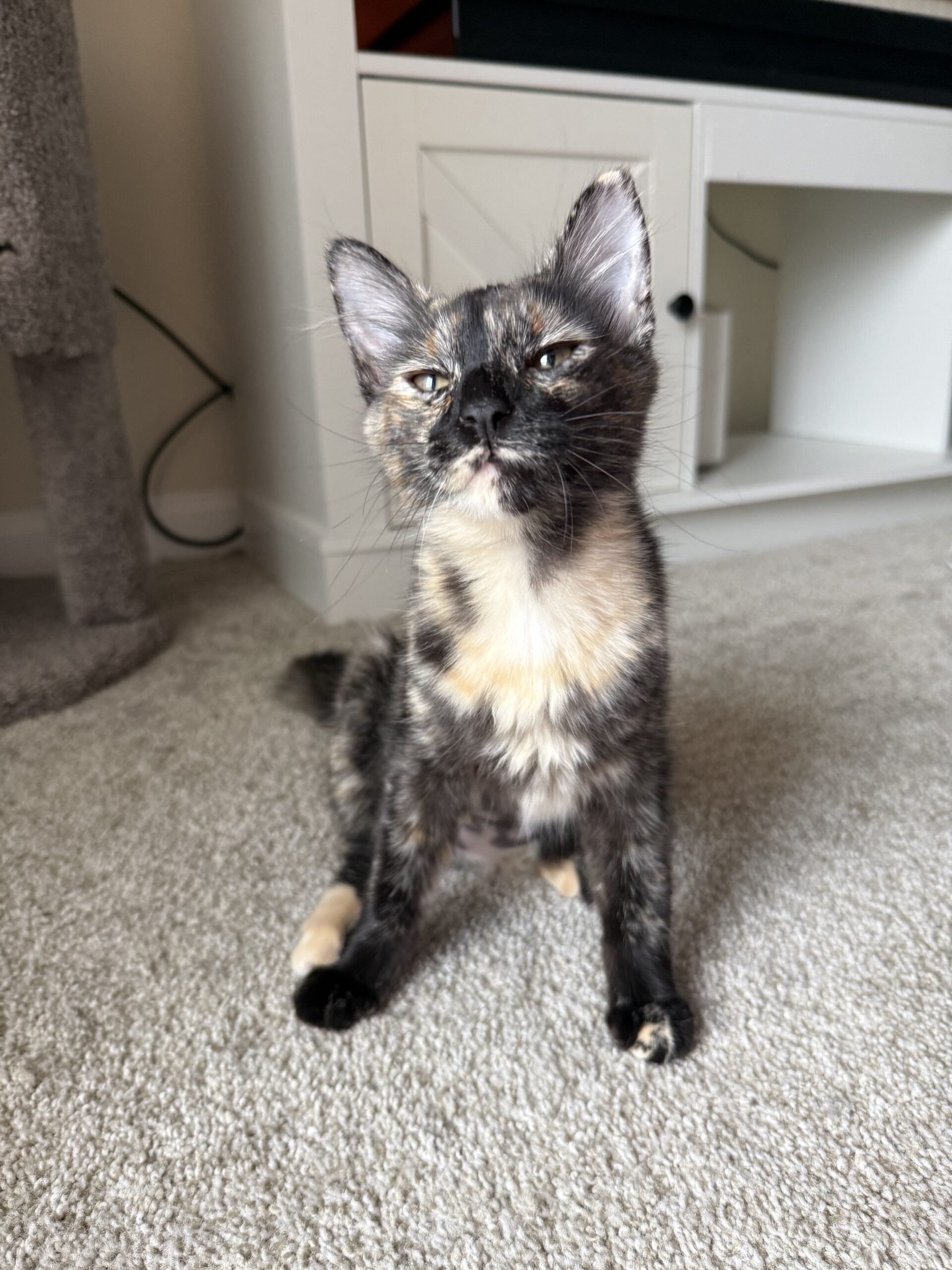 Caramel is a gentle, affectionate girl with a fondness for curling up beside you during a nap. She has bright bursts of playful energy, racing around the room when the mood strikes. when she’s tired, she’ll seek out a cozy spot next to a human or another cat to snuggle up. Caramel will brush against you as her quiet way of saying she’s ready for some attention.