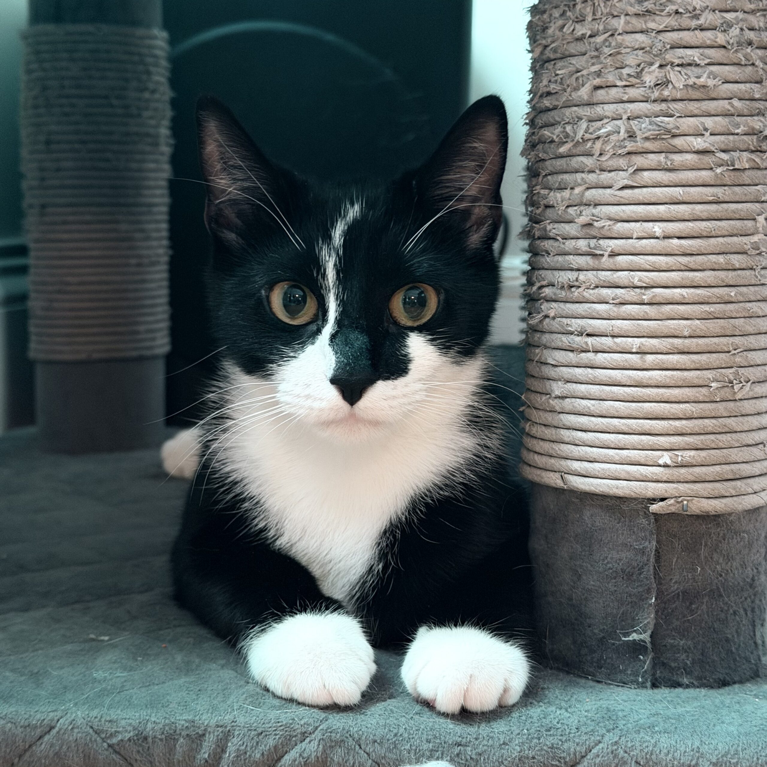 If you’re ready to welcome a chatty, charming tuxedo kitten into your home — quirks and all — Gemma just might be your girl.