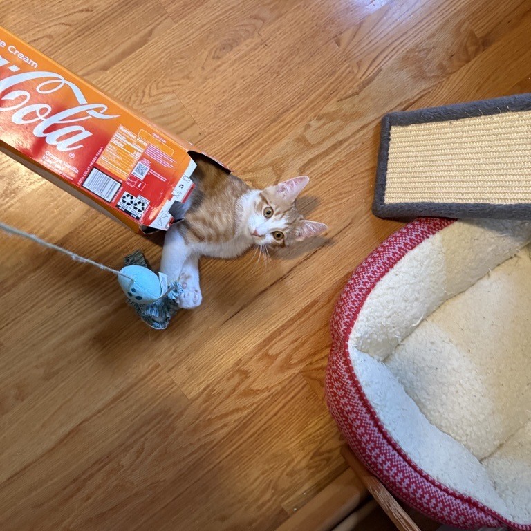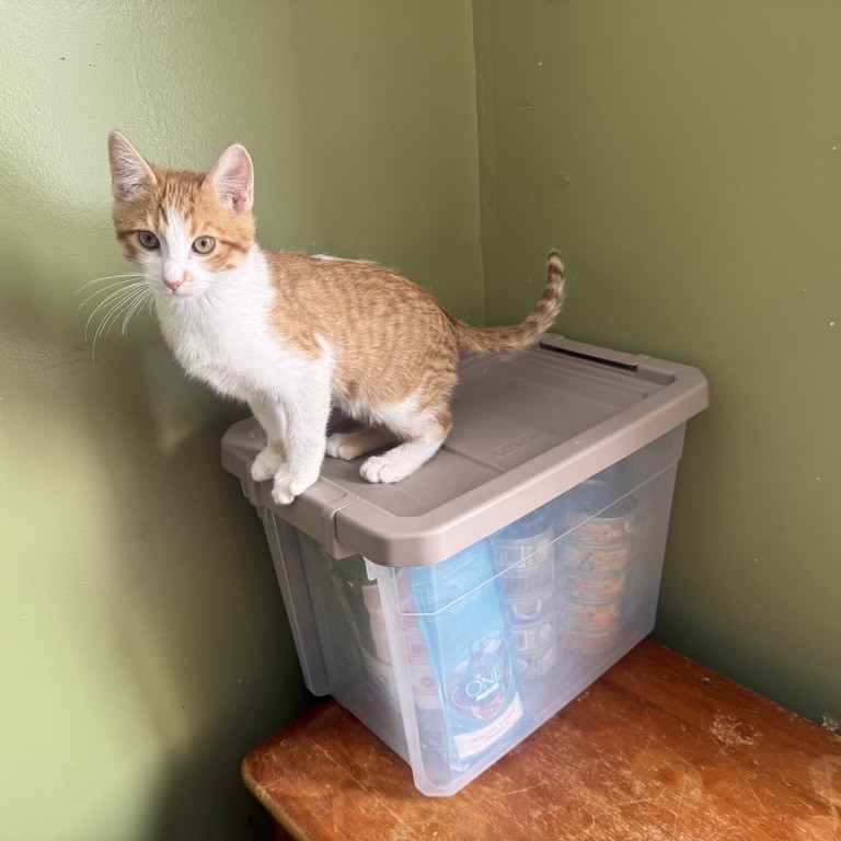 Marsh is a curious and playful kitten with a purr that never stops. His favorite sport is Hardwood Floor Surfing. Any object the slides is fair game, blankets, small rugs, pieces of cardboard, you name it. After leaping onto the object from a running start, he will slide across the room trying to break his previous record.