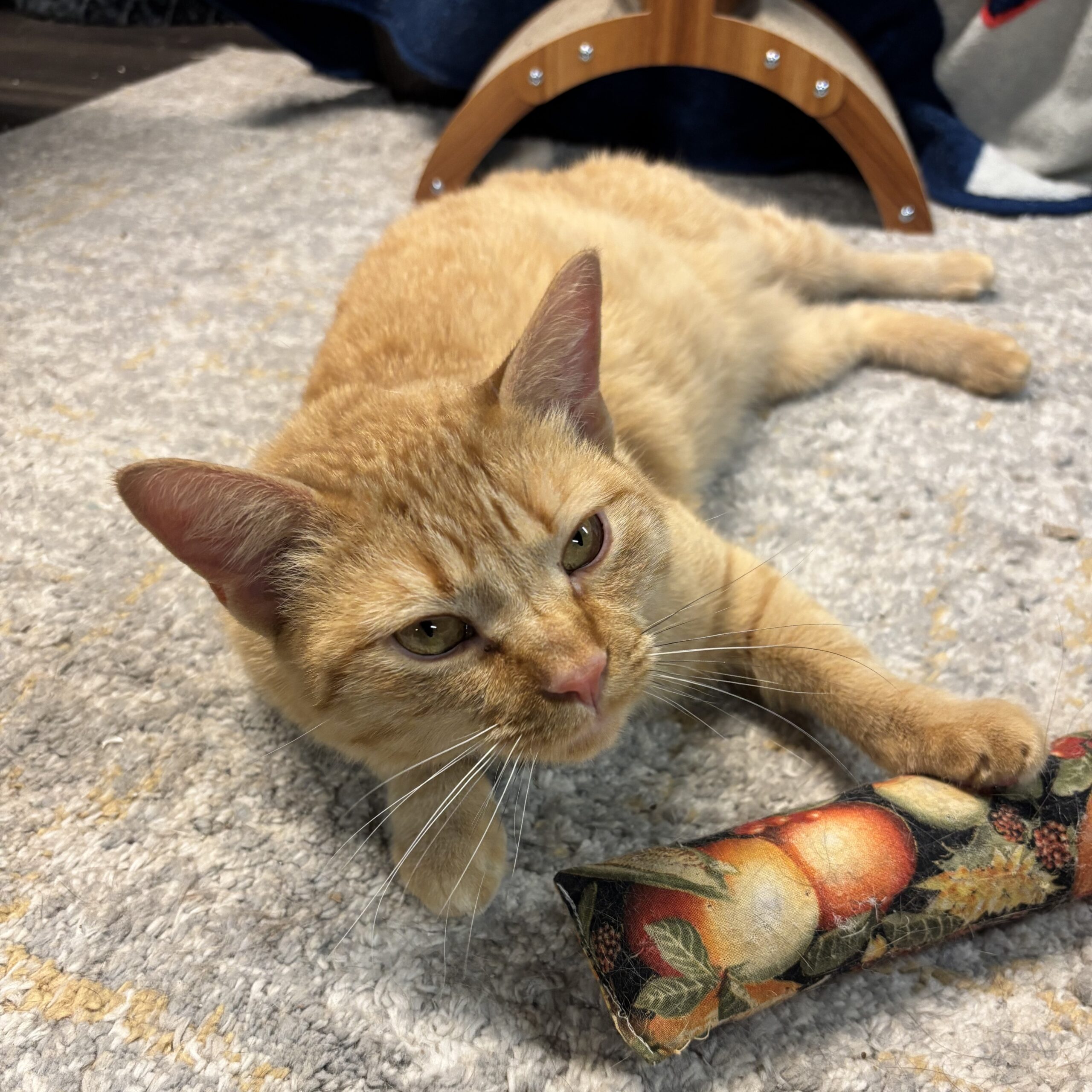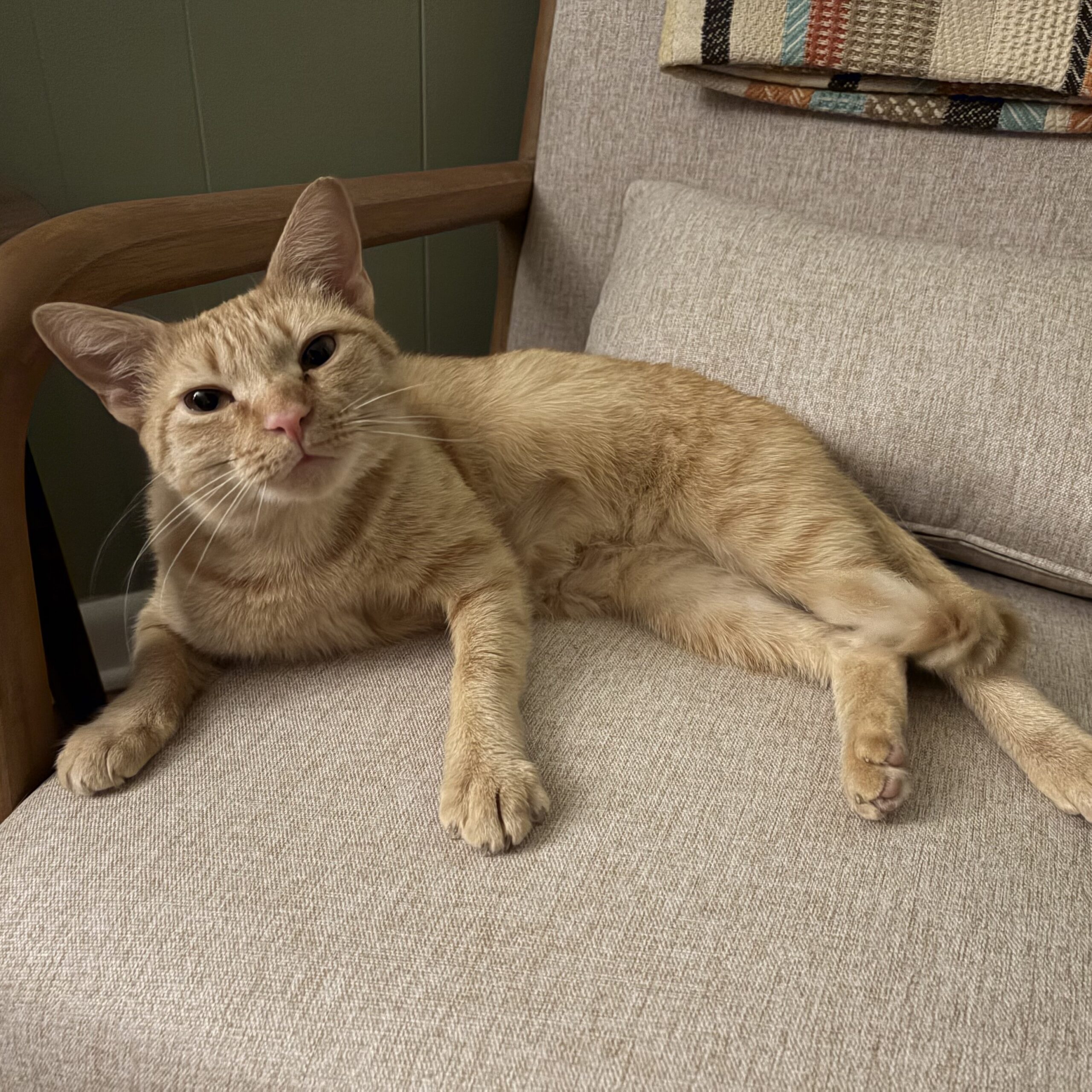 Nola isn't your average house cat—she’s got springs in her feet! Whether she’s chasing a feather wand or leaping to the top of a cat tree, her vertical jump is nothing short of impressive. When she isn't showing off her gold-medal acrobatics, she switches gears into a total purr machine. She is a master of relaxation and is looking for a soft place to land after her play sessions.