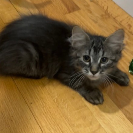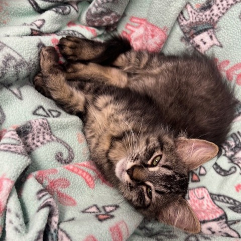 Prancer loves paper bags, wand toys and of course a squeeze up treat is a favorite. He should use wand toys while supervised because he likes to drag the whole thing around and even loop it around his entire body! He likes both a vertical and horizontal scratching pad or post. He’s great with other cats. In his foster home one of the older cats loves playing and observing the kittens, and two other cats want nothing to do with the fosters. Prancer and his siblings don’t mind anyone occasionally hissing at them… but love having the extra company and insist on being around all the cats.