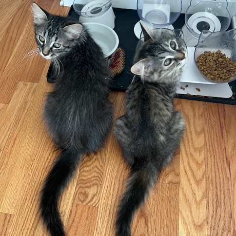 If choosing two kittens, their foster mom would recommend adopting Prancer and Dancer together. While they aren’t bonded, Dancer is very confident and Prancer likes to know he is safe with his siblings around. While he is vocal and seems to like to be in constant communication with his siblings… he is the only one who taught himself to open his cage while at the shelter for neuter. So, he too is independent and loves a great solo adventure!