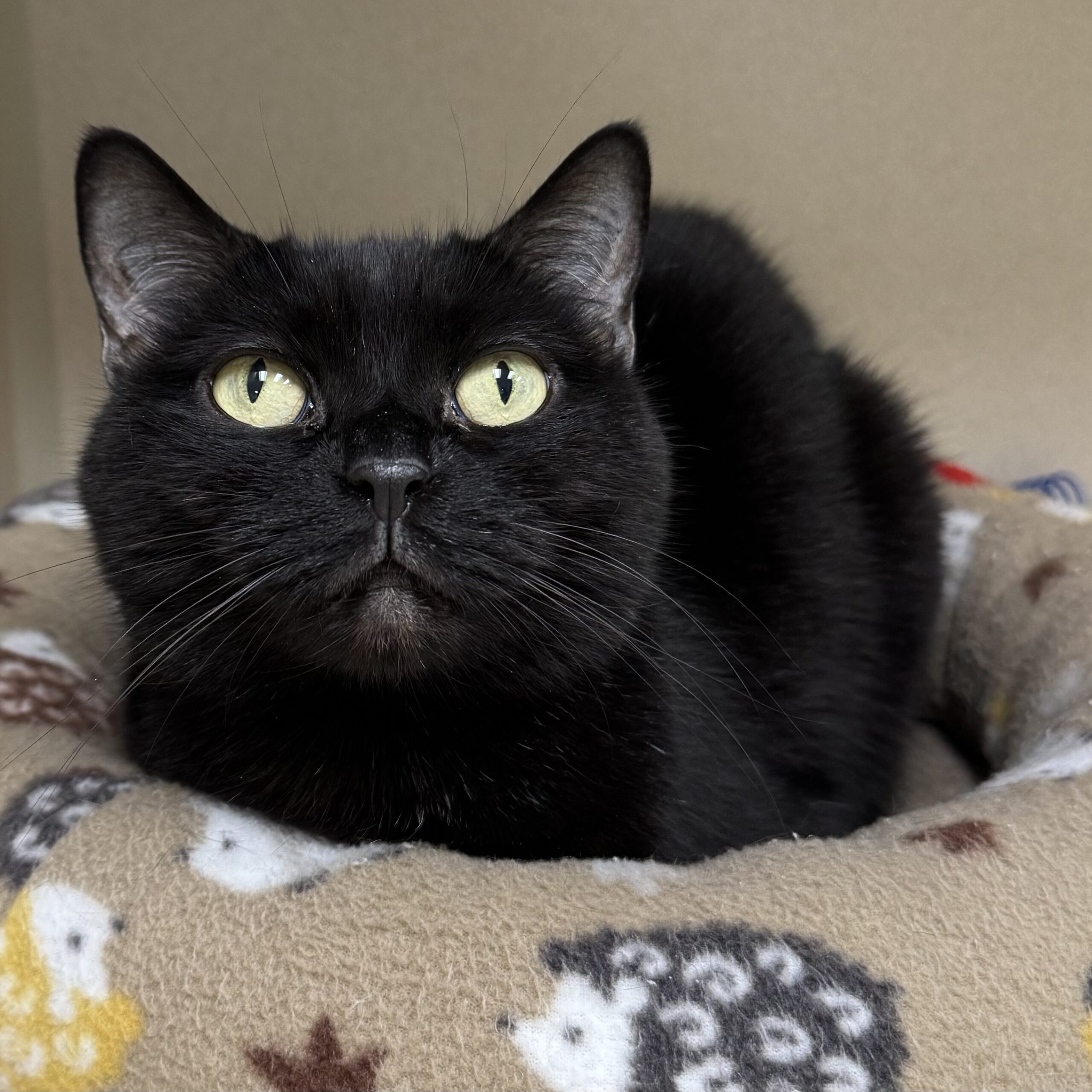 Yoda is a gentle presence who seems to like everyone. Yoda is looking for a soft place to land… a place to spend her senior years curled up next to someone she loves. Yoda would like to sleep in front of the fire (or the radiator, she isn’t picky). She would like to watch the birds and squirrels from a peaceful perch in a cat tree and then amble over to meet you at the door when you come home from shopping. A present for her? That would be lovely, but your presence would be enough.