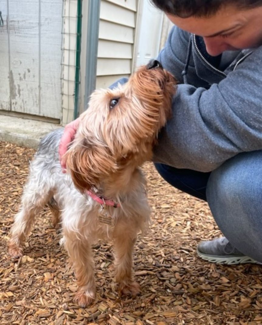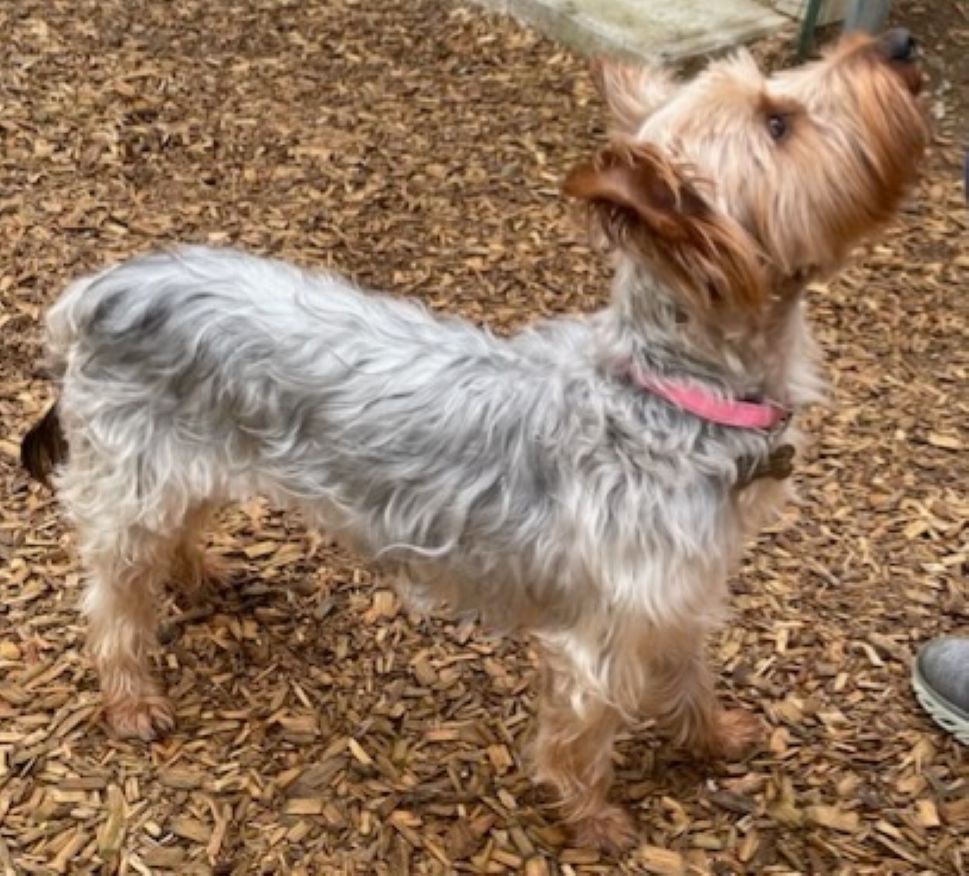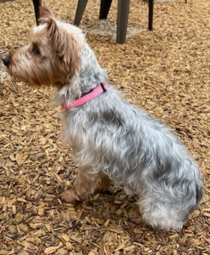 Meet Daphne! She is a 1-1/2 year old Silky Terrier and weighs 16lbs. Daphne has the most luxurious silver hair that is ever so soft. She has a big Terrier personality and is outgoing and friendly. True to her Terrier roots, Daphne is an energetic, on-the-go kind of girl, but enjoys one-on-one snuggle time at the end of the day! Daphne would be fine as an only dog, but may not mind sharing her home with another similarly sized pup (Daphne would not like to share her castle with larger dogs). Gentle respectful children 6 years and older in the home could be a good fit for her as well!