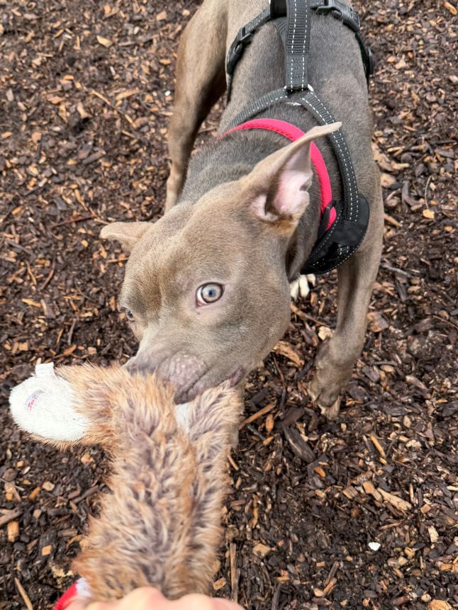 I’m a simple guy and I just love to run around and play with my toys, especially if they’re stuffy and squeaky! I have a blast when someone chases me - they can never catch me! If you have another furry friend to play with, that sounds like a lot of fun too. Don’t worry, I promise I know how to kick my feet up. If you want to spend the day on the couch, I’ll be right up there with you because I love to cuddle. The truth is, I just really like being around people. There’s something special about you guys - you’re always smiling and rubbing my belly and talking in baby voices and … I could go on! I love all of it!