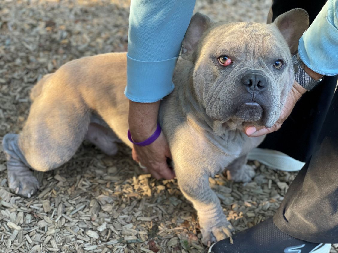 He is a 1 year old French Bulldog/English Bulldog mix and weighs 42lbs. This guy is an absolute sweetheart and loves human attention and affection (if you are looking for a constant buddy, he's your dude!). He is a complete snuggle bug and loves his pets and praise. Gucci adores walks and would love to accompany you everywhere you go. He is silly and playful and would be happy to entertain your home as the resident clown. Gucci would be happy as your one and only or may consider sharing his home with a calm, friendly female friend. Homes with sturdy children 12 years or older will be great for this guy.