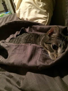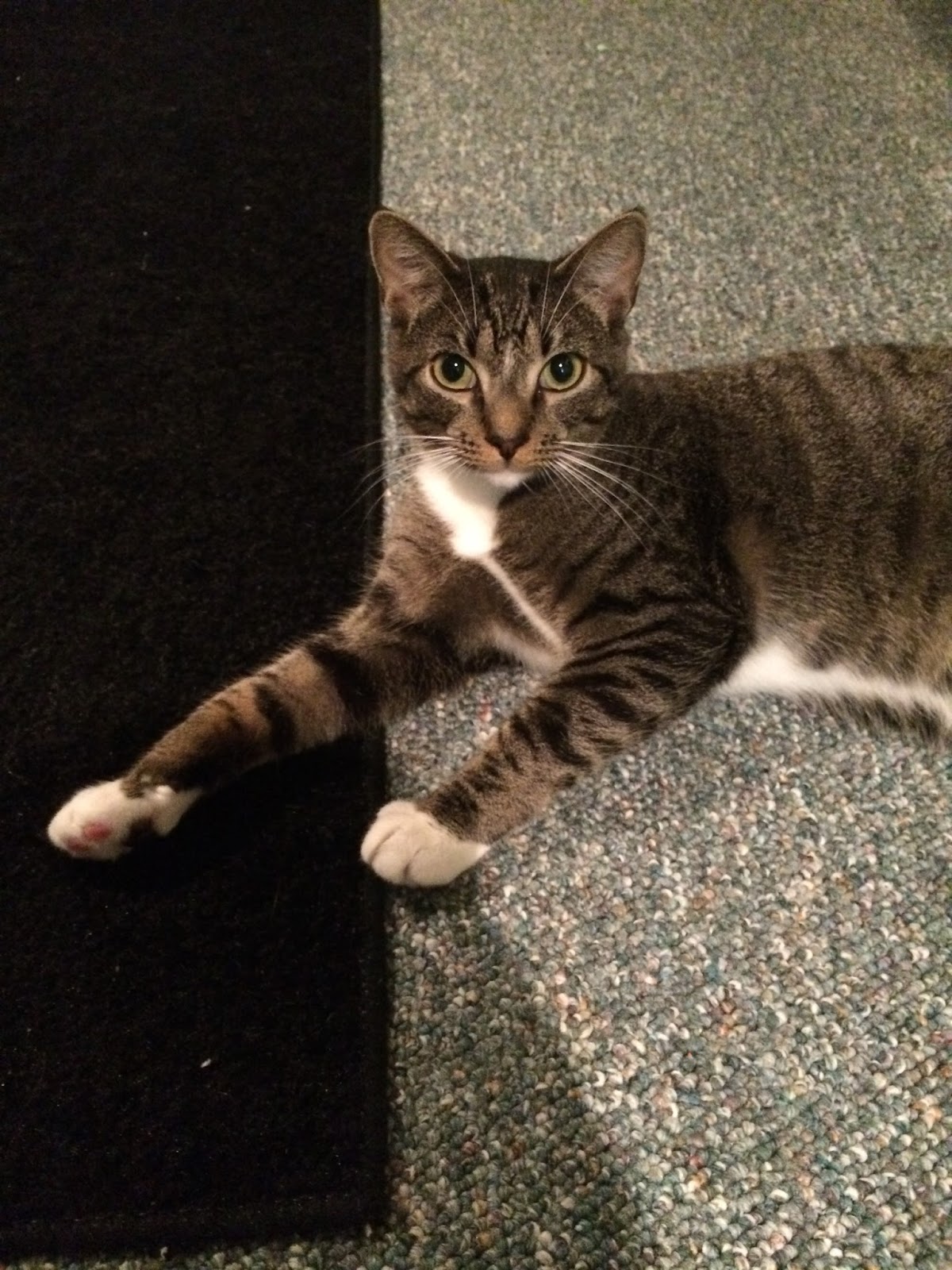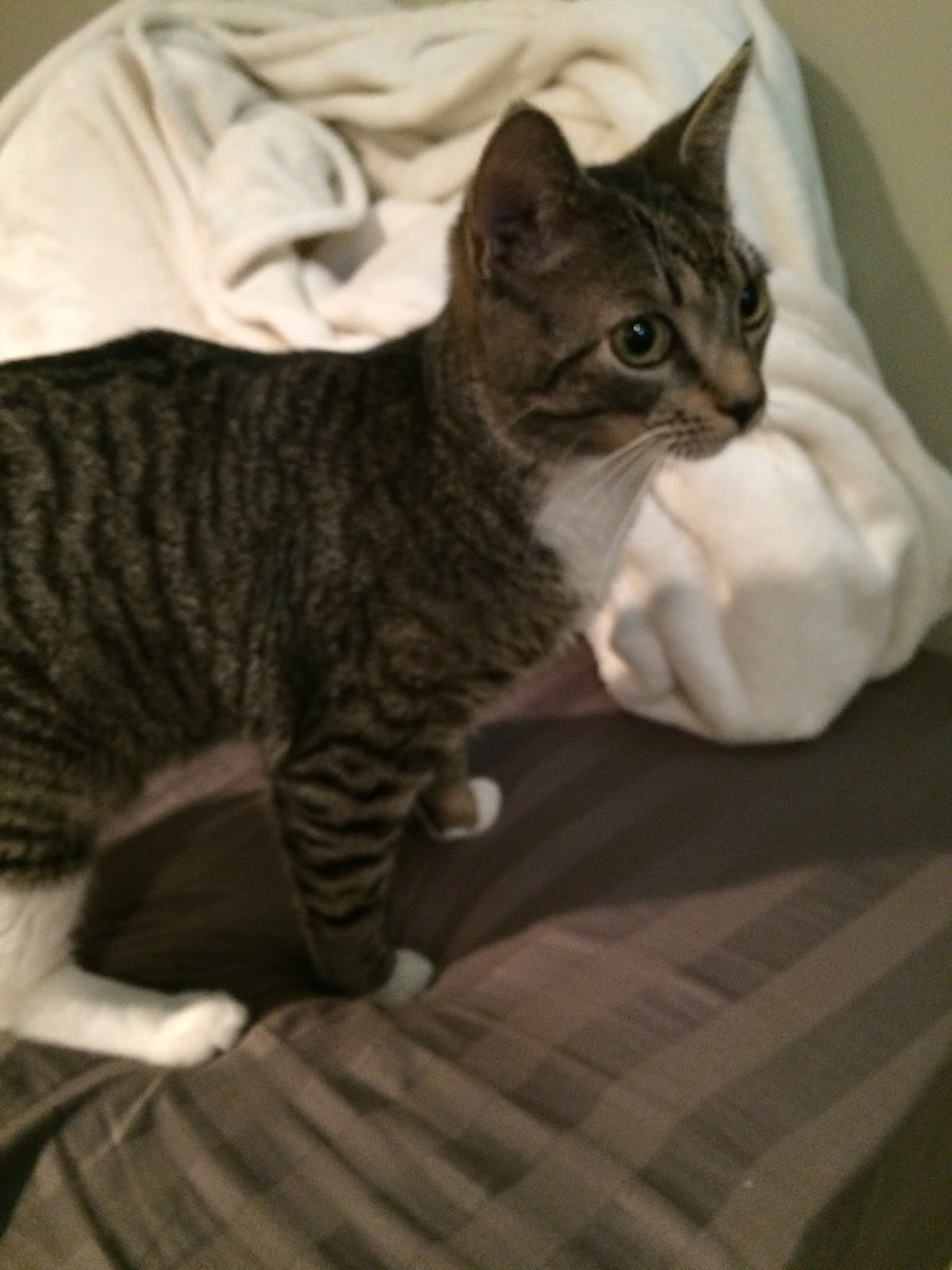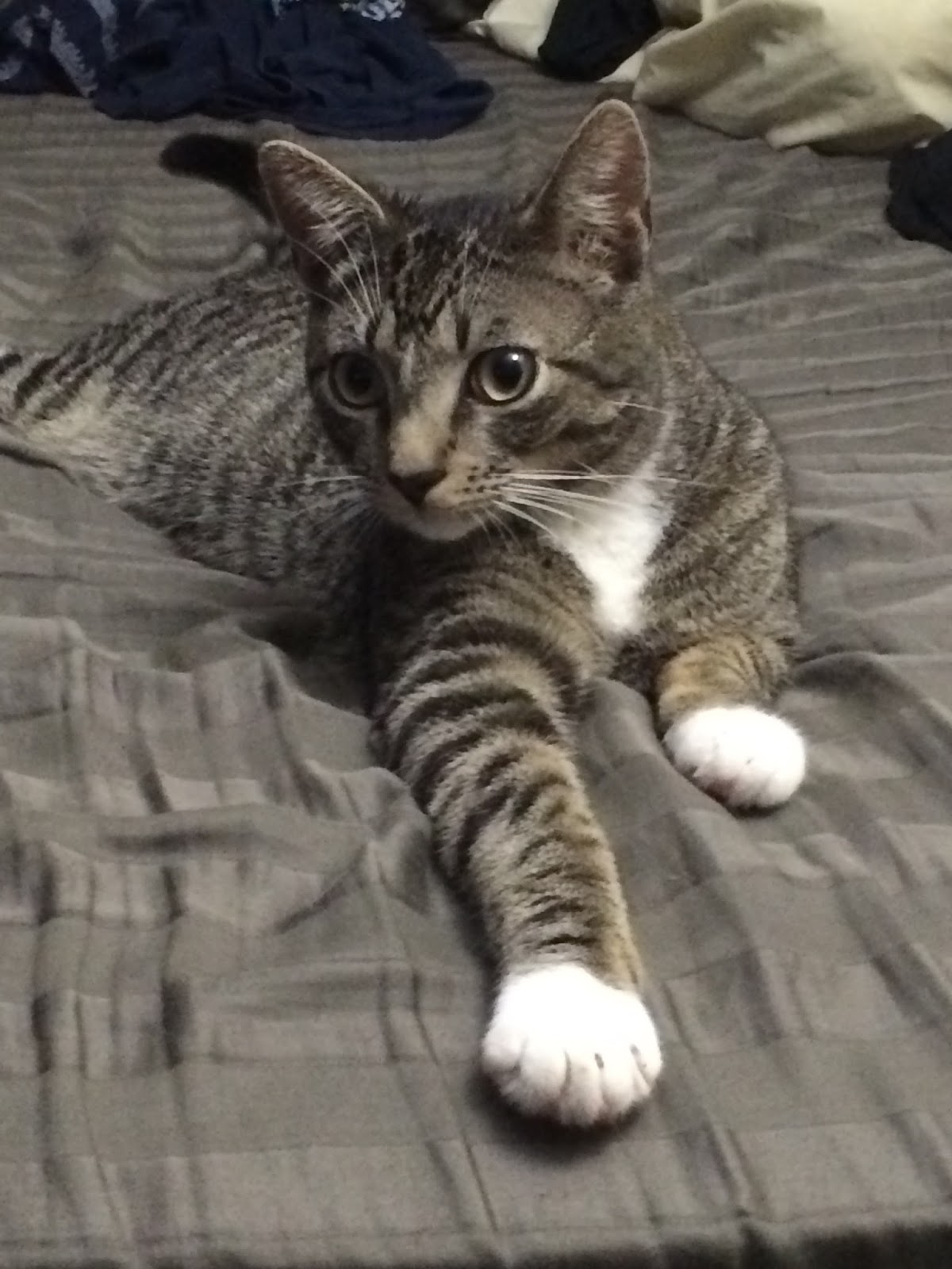 Huey has adapted very well to living at my house and has been very gentle since i brought him home. His eating habits are perfectly fine and i have not had any trouble with him. I tend to call him “kitty” a lot now and he still loves to play and sleep on my bed usually on top of me while I am sleeping. He also loves sleeping