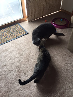 Hi everyone, it’s Miso! I’m doing well in my new home, my big brother and I are still not too fond of each other, but we’re working through our differences. I certainly prefer his food and water over mine. I love to jump on top of the cabinets and refrigerator to get the best view. I also like to hide under my moms bed, it’s a big scary 12lbs brother thatI have. I think I’ve stolen 3 hair ties already but I have no idea where they are! Just wanted to say hello!!