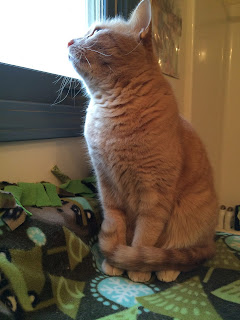 Teddy is doing amazing, and a month ago he started PURRING. It just warmed my heart. Him and Keishi are good buddies, they look like twins, and I get to pick him up for short periods without him being scared.I just LOVE this boy and happy he loves us too.Keishi is the one with the crooked ear. He was another POA kitty, formerly known as Phoenix