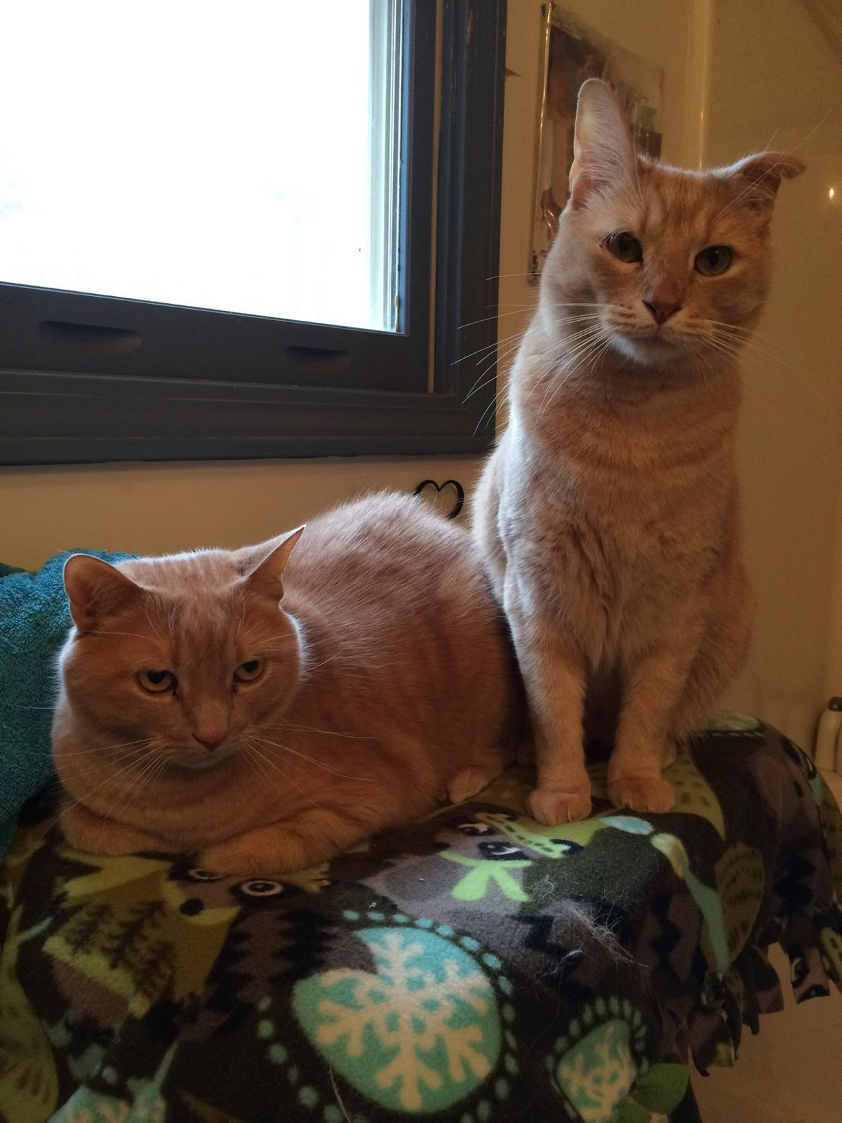 Teddy is doing amazing, and a month ago he started PURRING. It just warmed my heart. Him and Keishi are good buddies, they look like twins, and I get to pick him up for short periods without him being scared.I just LOVE this boy and happy he loves us too.Keishi is the one with the crooked ear. He was another POA kitty, formerly known as Phoenix