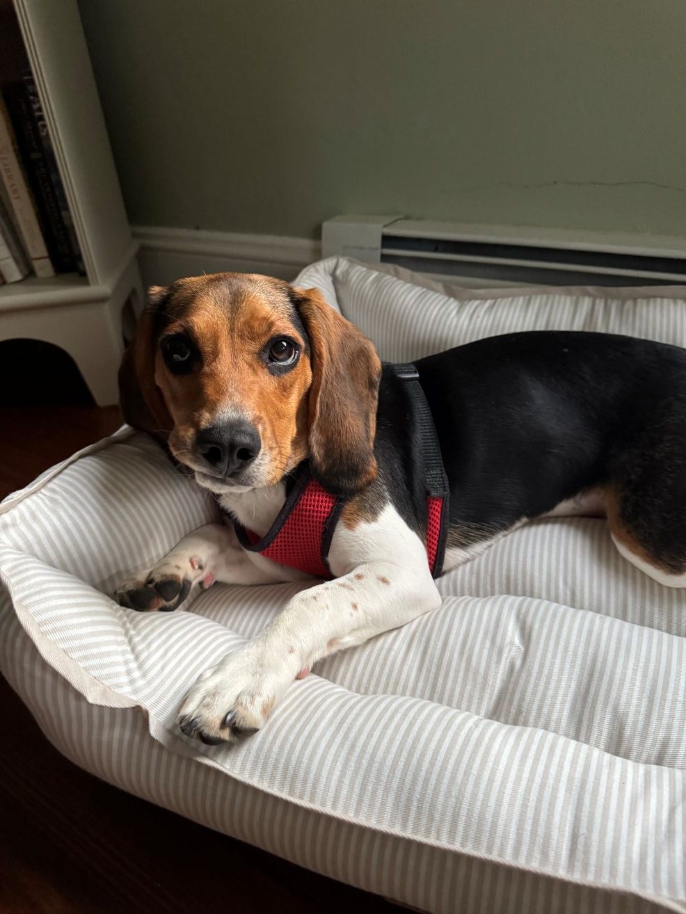 Lily is a 7-month-old beagle who weighs in at 22 lbs, and has a heart full of love and a tail that never stops wagging! With classic puppy energy and a playful spirit, Lily is always ready for her next adventure—whether it's a walk around the neighborhood, a hike around town, or chasing toys indoors. After playtime, she’s happiest curled up beside you, soaking in all the snuggles she can get.