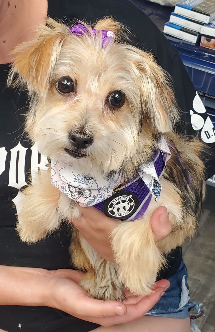 Meet Missy! She is a 7 month old Shih Tzu/Yorkshire Terrier mix. This poor little bits came to us after not gaining weight or thriving in her home for months and months. We have done medical testing and outside of anemia, this little peanut is thriving now in a foster home (more testing is pending). She is gaining weight so quickly and perking up so fast - our veterinary partners feel that this was a malnutrition case. Missy is an active, fun loving puppy that will excel getting out in the world (she cannot at the moment while we wait for her weight to stabilize to be able to receive her first vaccinations).